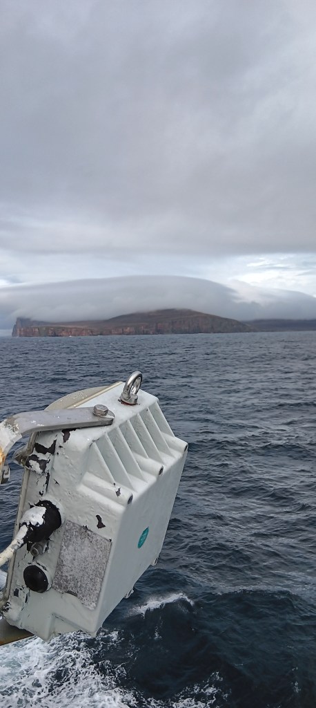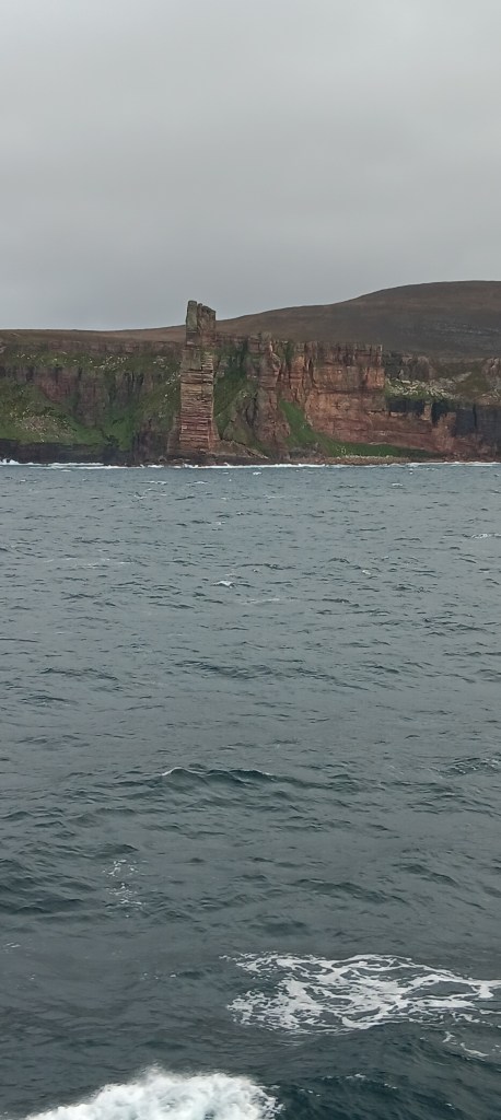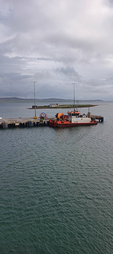 Thurso is just 8 minutes drive from Scrabster, where the ferry runs from, but the bus is unreliable and there was only one already-booked taxi! I quickly nabbed him for a second run, then a group of three asked if they could share. The taxi driver was in great pain, having just come out of hospital with broken ribs and a punctured lung. When asked how tourists cope when he’s not available, he just shrugged! Could the two hours between train and ferry be to let passengers walk the miles between, luggage and all?