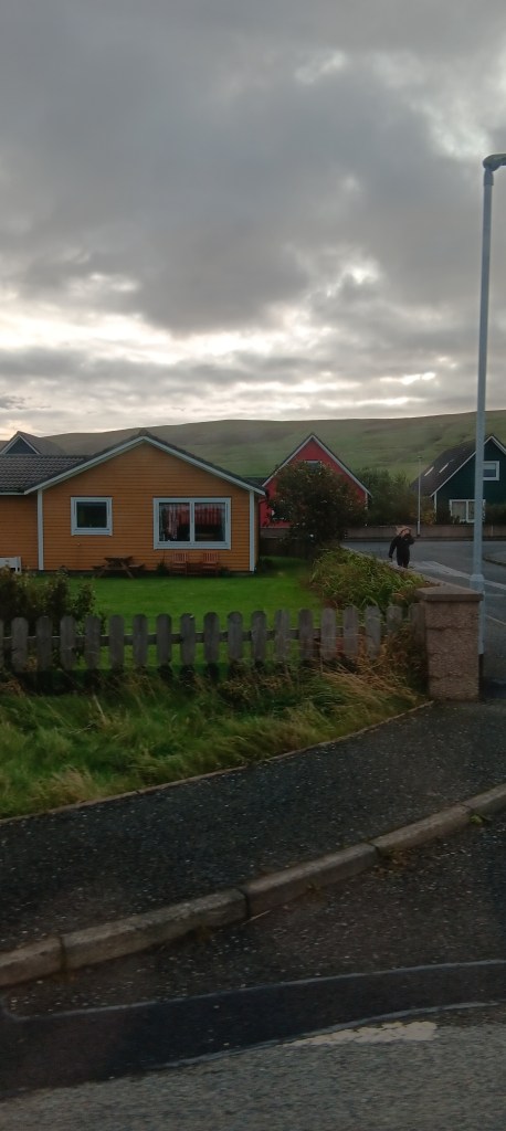 Going back to the airport, the helicopters are bigger than the planes; 24-seaters that day, servicing the oil and/or windfarm industries. Oil brought much change to Shetland. Hundreds of houses built for construction workers, in valleys like Mossbank. Unimaginative, mostly 3-bedroomed, semi-attached houses laid out in rows climbing the hillsides. Leisure centre’s, play grounds and other amenities in each village. But then the workers moved on; job done. Cheap housing for those that can’t find anything better placed or nicer. Broken fences, signs of hoarding, and folk living behind closed curtains tell the story. One islander remarked it was like watching big city slums cancering into Shetland.