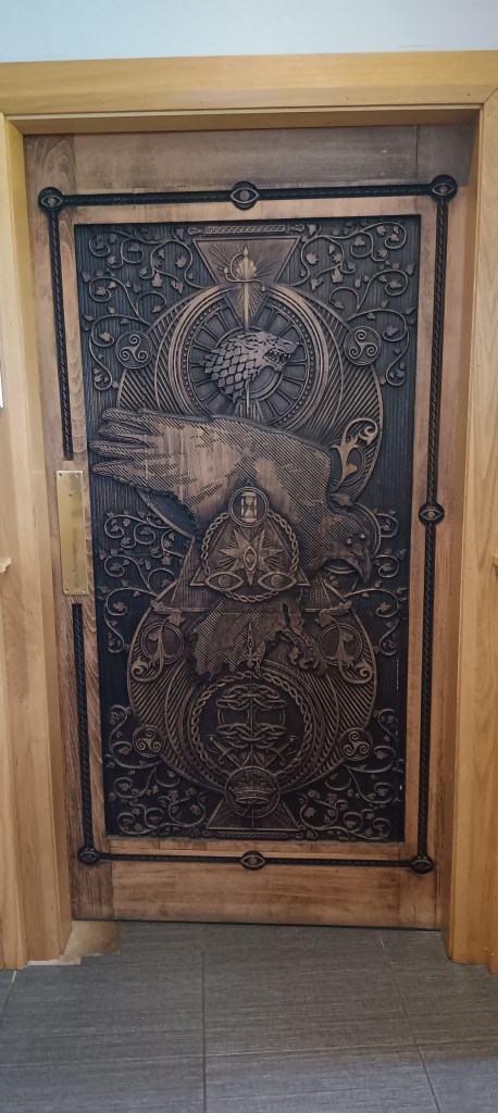 …why do folk still make the journey to see the dark hedges when the tree numbers are depleting? The fallen wood is being carved into beautiful doors.