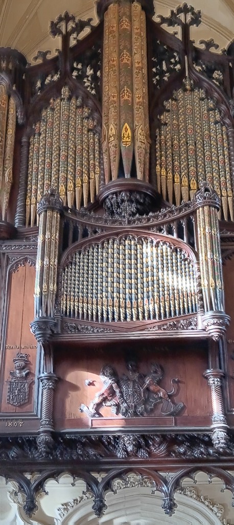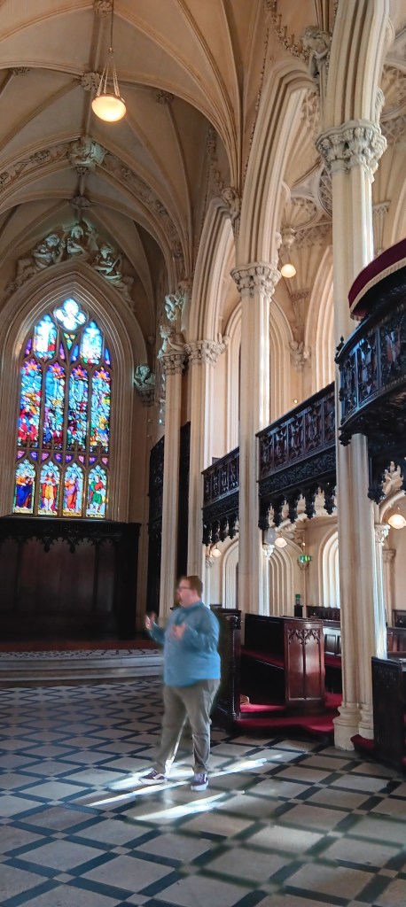 Next, the Royal chapel, only accessible under supervision. When being constructed, concern regarding the chapels weight on marshy ground brought about a surprising solution; those beautiful stone columns and walls are timber, covered with a slurry to look like the real thing, thus protecting the building for generations. And why is it a Royal chapel? Royalty attended services here when visiting the castle.