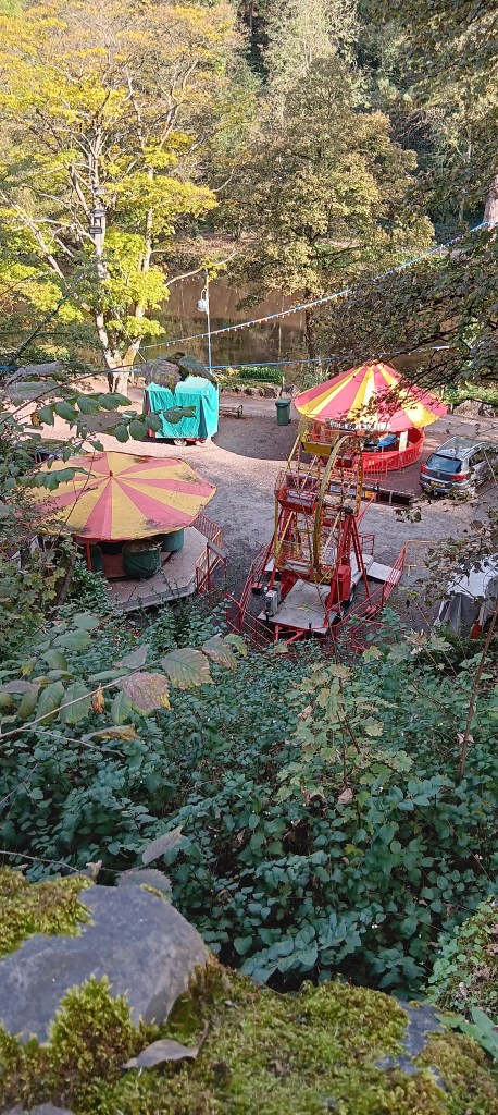 Continuing along the path above the river, a fair ground revealed it’s unlikely presence through the trees.