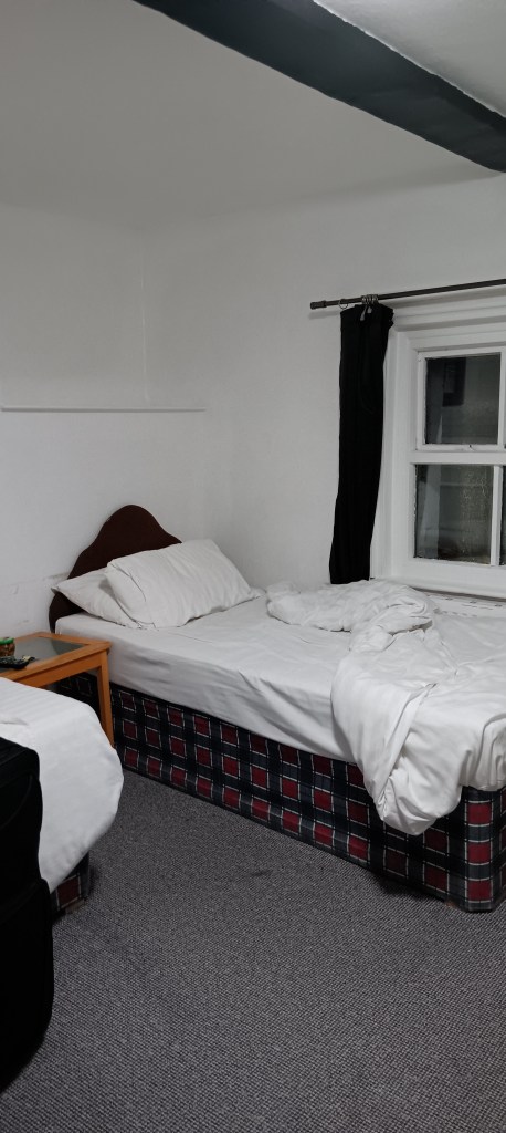 The inn I stayed at had been built c1630. My room was at the very top; probably originally the servants quarters. Home owners back then didn’t really care about servants comfort, so the final set of stairs are narrower and steeper than the lower sets. But the view of the street made up for it. The timber in the room itself was delightfully original, with no straight lines or level pieces.
