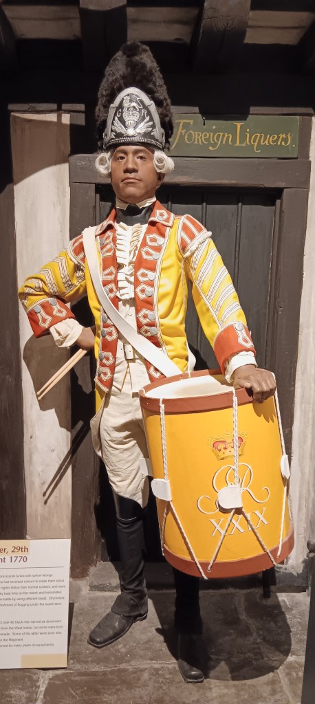 In the third section, walk through Worcester’s proud military history. The stories, both visual and audio, have detail most folk would never have known previously. For instance, forty men, mostly from the West Indies, served as drummers in the Worcester 29th Regiment, c1770. They were paid slightly more than ordinary soldiers, and held a higher status. The regiments colors of red and yellow were reversed for the drummers, making them easily recognizable.