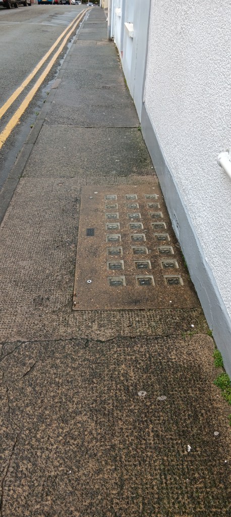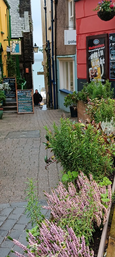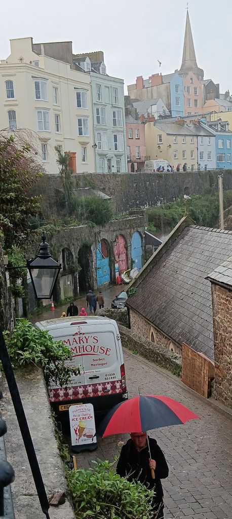 In pouring rain, the climb without cover to Tenby centre could easily feel miserable, especially if you forgot to make use of the train’s onboard facilities. The ‘windows’ set in the footpath to provide light to basement rooms can be lethally slippery for the unwary too.