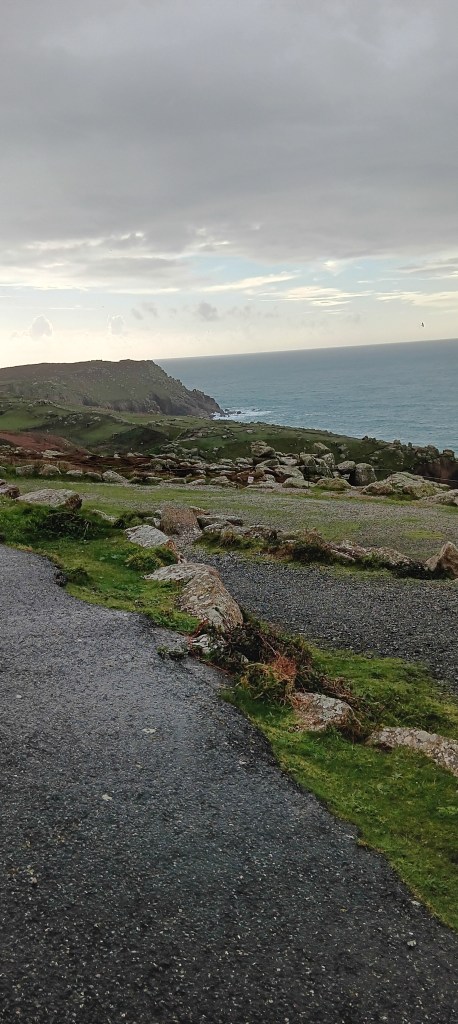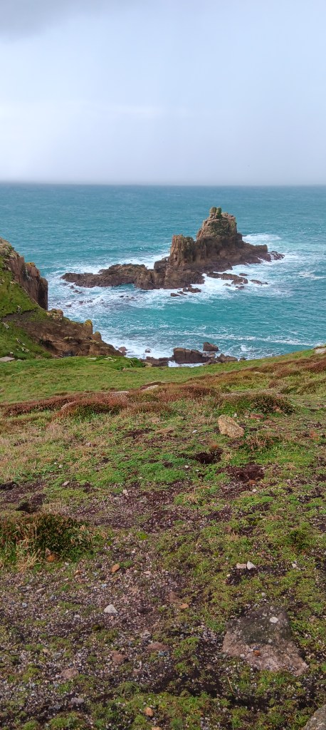I was excited to be visiting Lands End. That is, until I overheard a uniformed Lands End staff member at Penzance bus station grizzling on her phone about the place. Had I made a mistake? But then she grumbled about the bus being late. Apparently she had seen the driver wander off to the staff room. In her view, he should have gone to the toilet before he got to work. Seven minutes late and no sign of him. Grumble, grumble. But…. when our bus turned up it wasn’t the one the girl had moaned about. The woman driver apologized for road works delaying her! And the girl continued her moan on the phone; bloody roadworks!
