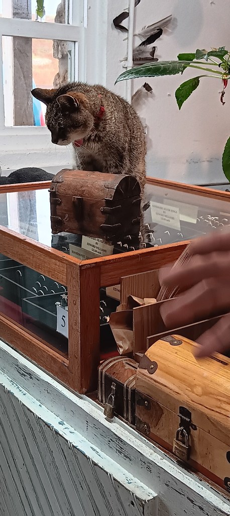 Tucked into a wee dip, well away from the commercial onslaught, sits a silversmiths workshop, Greeb Cottage. Here the wonderful pirate Edward Williams and his cat Felix entertain the child in all of us, with magic tricks and mermaid tales. Felix allowed me a lucky charm he’d collected from the beach. The clear marble-like treasure is the result of a full moon beaming into a deep hole in the sea where an enormous spike-covered puffer balloon fish lurks. The moon beam reminds him of his youth, when life as a small fish was carefree, and marine creatures weren’t afraid of him. He releases bubbles as he cries. Mermaids are attracted by the bubbles, and, moved by his emotion, sing to him. Their high pitch pressurises the bubbles into charms, similar to how diamonds are formed. These charms wash up on the beach, from where Felix collects them in his mouth to bring up the cliffs to his treasure chest. Only special people are allowed to look in, much less have one! The lucky charm sits in my pocket still; you just never know…