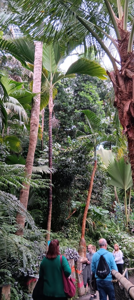 As to those immense biomes; what an adventure. I turned left, into steamy rainforest so muggy there are cooling-off rooms for anyone becoming overcome. The path winds through Asia, country by country, but without the snakes and other fauna. Trees reach their full height, and there’s fruit and flowers unlike anything I’d ever seen before. In one spot, bamboo stems over one hundred millimeters across, so strong and straight, yet hollow to tap.
