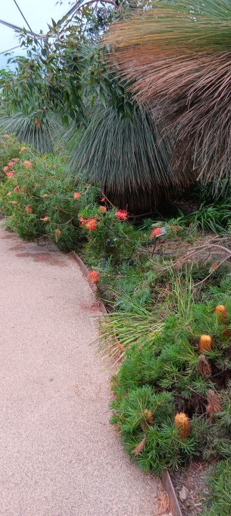 Leaving the bionomes, I trundle up towards the Visitor Centre, thinking my day was done. But lo! Tucked into a section of path everyone would take at some point during their day was the incredibly beautiful New Zealand section, with the moa-adapted lancewoods, sweet-smelling kanukas, wavy-leafed cabbage trees, gentle ferns, and so much more! What joy! And then disappointment. Not a single plant had an identification label, no stories burst forth and the area was devoid of Iwi blessing. To cap it all off, there was nothing to say this was the New Zealand garden. I felt robbed.
