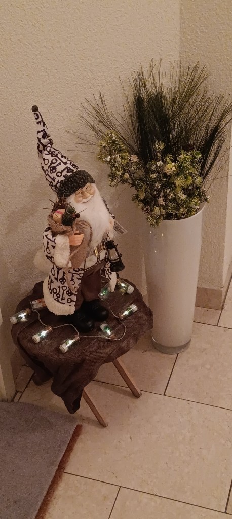 Arriving back at my friends home in a house converted into three apartments, what a delight to find Christmas welcomes in doorways.