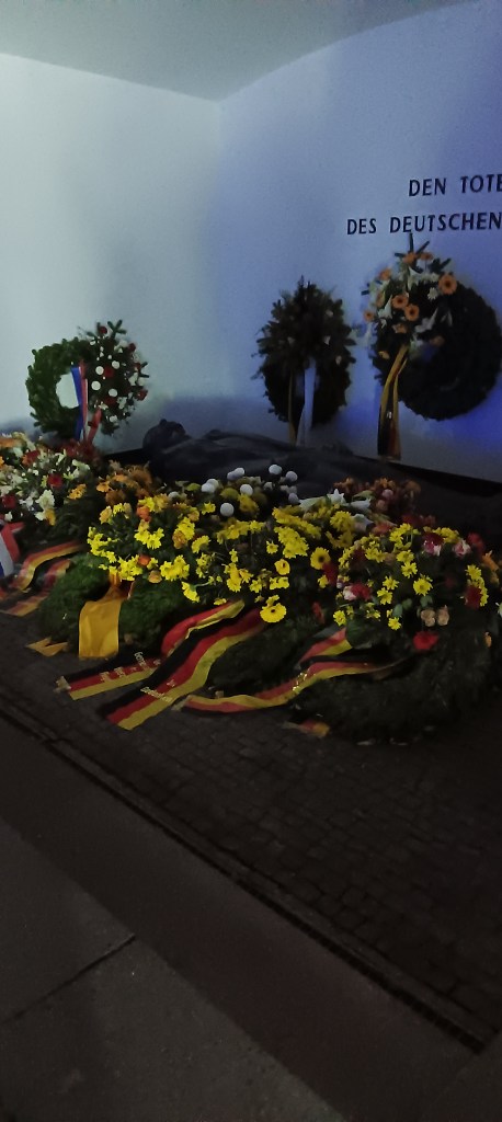 A surprising yet humbling sight as we turned a corner; a wreathed wall insert paying homage to those killed in the world wars. The sleeping statue surrounded by flowers a sobering reminder that today’s joy was hard won, and painful for families on every side.