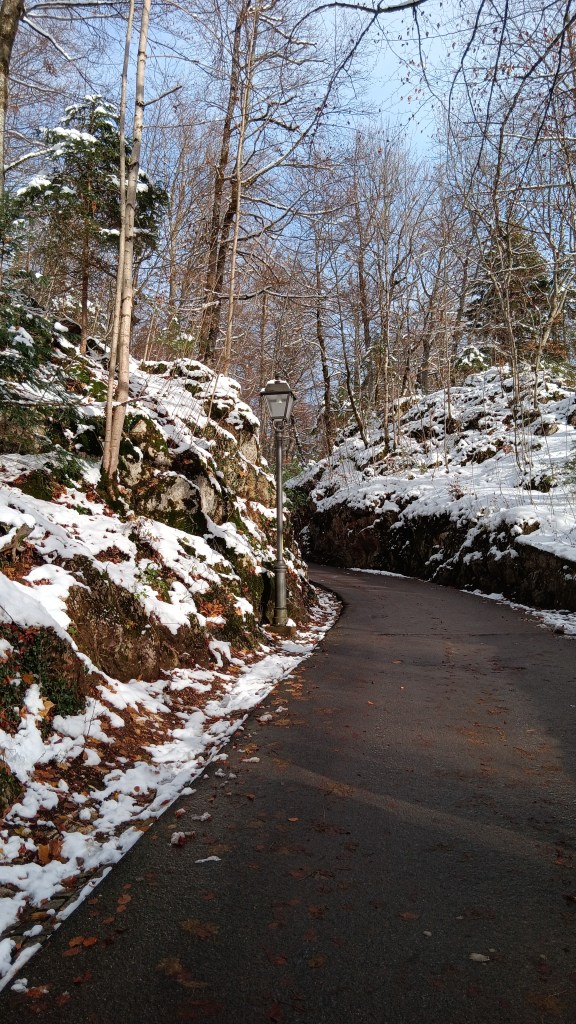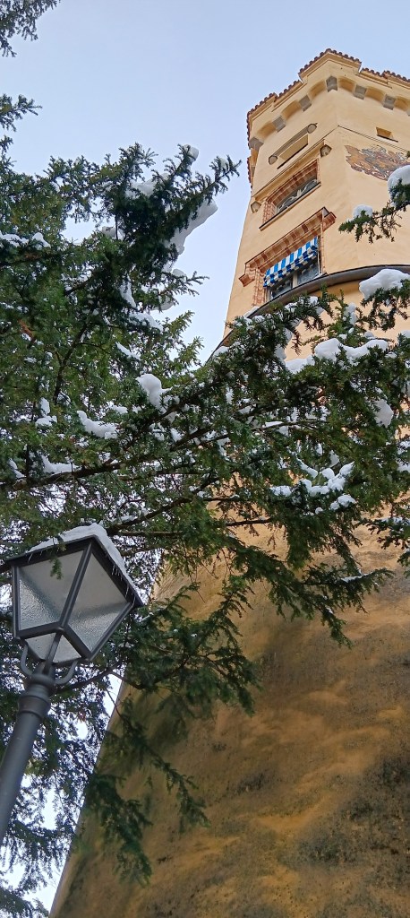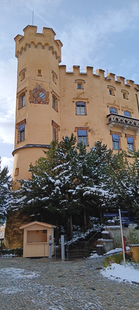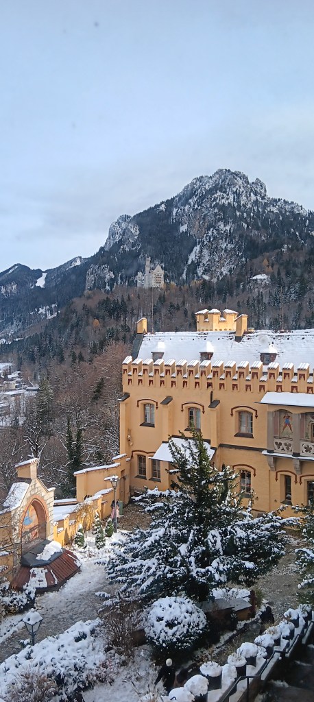 Outside, the scenery is absolutely stunning; snow lacing rock faces, or waiting in lumps on fir branches to drop on the unwary. How easy to imagine swinging up in your royal carriage through forested road, arriving in splendor to alight amidst eye-watering views. And then to look up at an artists castle, before entering a world of royal state.